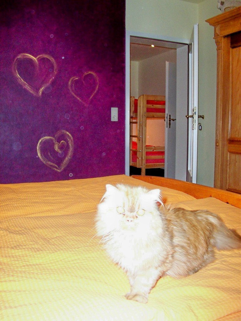 Im Schlafzimmer 2 Betten und ein Kinderbett. Ein Schlafraum